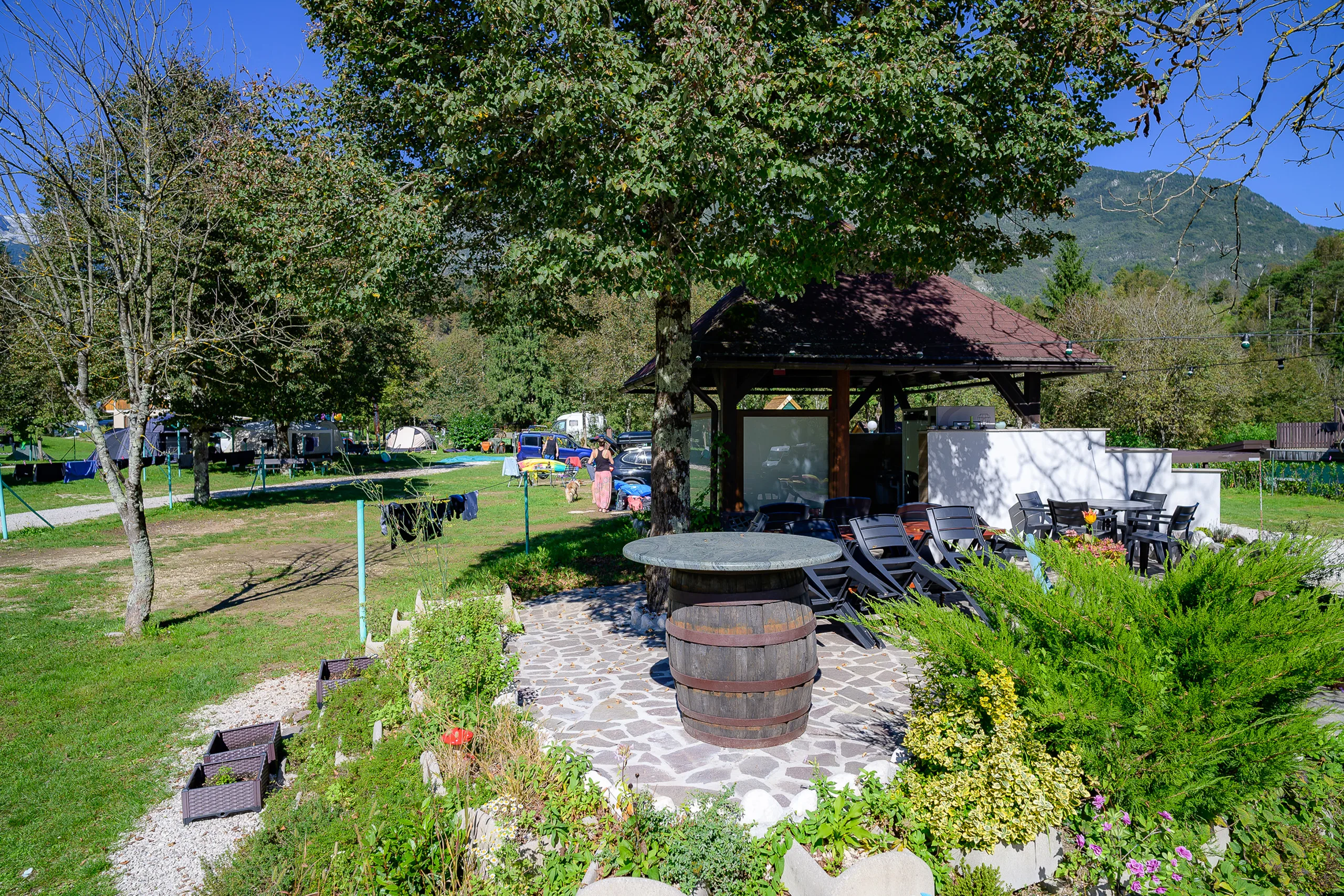 Kamp ima tudi skupno kuhinjo in tri večnamenske pokrite skupinske prostore, igrišče za otroke ter igrišče za odbojko. Na voljo so vam tudi kurišča na prostem.